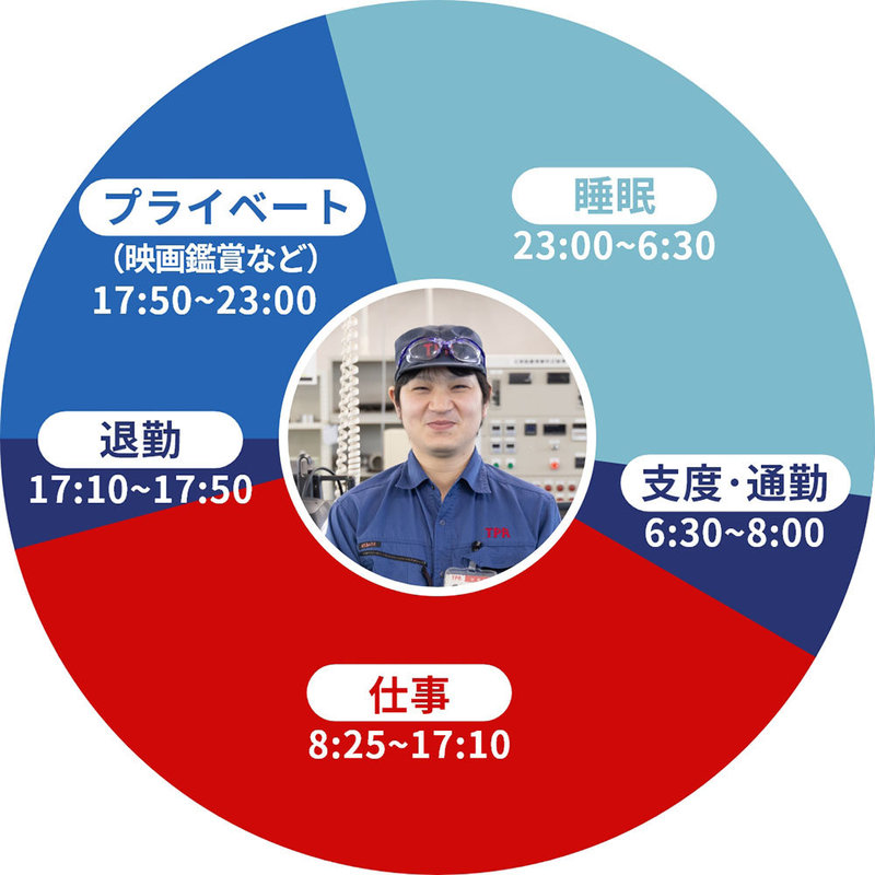 - 8:25始業、朝礼